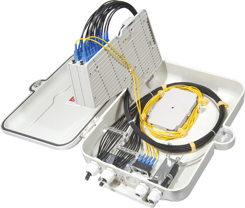 3S FOSB-16-C Fiber Optical Splitter Box provides a high density wall mounted or pole mounted solution for next generation networks, which aims to provide and manage fiber splitters in a limited space. It is designed for FTTH (Fiber to the Home) or FTTB (Fiber to the Building) with protective housing for all the passive fiber equipment installed inside.
