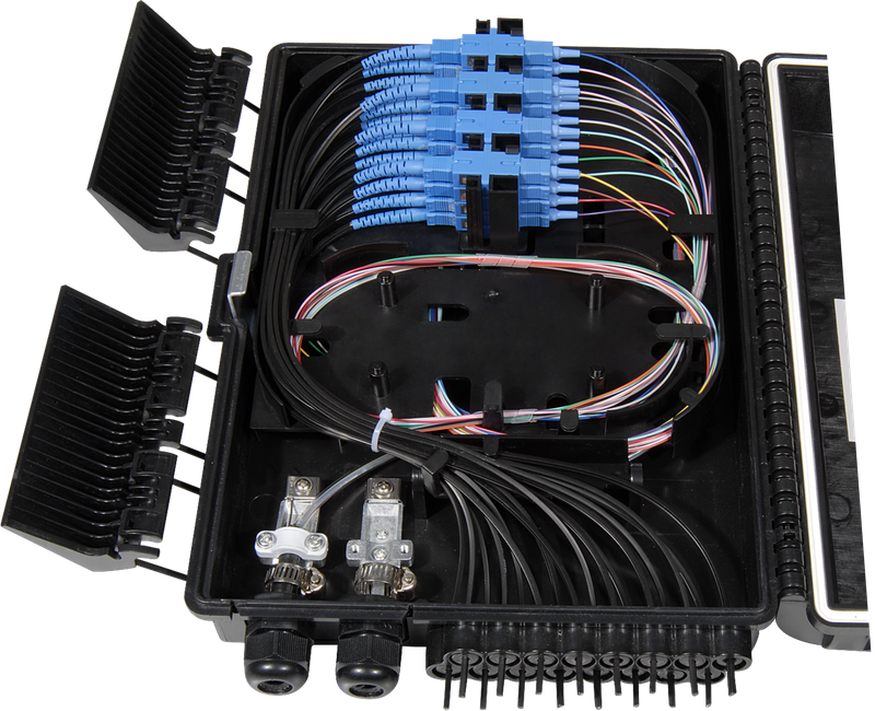 3S FOTB-16-A Fiber Optical Termination Box is a box with 16 ports for FTTH drop cable. It provides a high density wall mounted solution for next generation networks, which aims to provide and manage maximum numbers of fiber termination in a limited space. It is normally installed in the way of wall mounting or pole mounting.